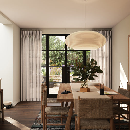 Sheer curtains are fantastic for offering privacy and gently diffusing glare, whilst allowing natural light into your room. They are perfect in spaces where you are overlooked, such as a street-facing room, or in spaces where you want to connect the indoors with the outdoors, such as in a kitchen or extension.